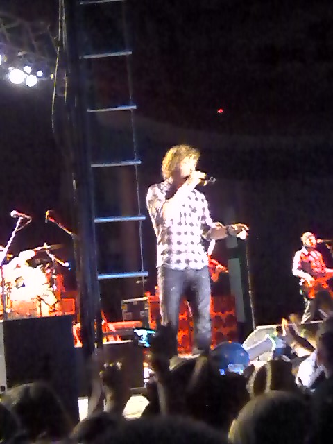 It took us 45 minutes to go the five miles to the amphitheater. I’d forgotten how much I hated concert traffic – and this traffic was made even worse by the fact that the venue was on a rural two-lane highway with a single two-way entrance. I got the girls dropped off at 5:45, plenty of time to go stalk the buses and take in the atmosphere.